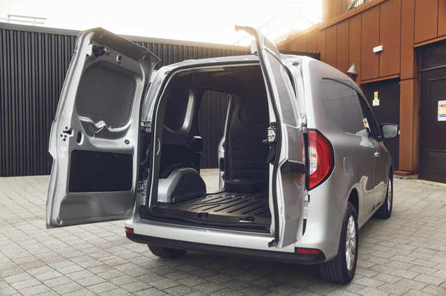 It's comfortable and relatively spacious, although the fixed bulkhead does limit how far you can slide the seats backwards and forwards. Space is the back is impressive for a small van - the L1 model that we've tested has a load volume of 3.3 cubic metres, while access is easy and unimpeded by the underfloor batteries.