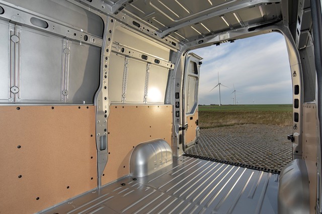The load area isn't compromised by the electric motor or batteries either – all are flat under the floor – and even in its shortest form it offers a load bay length of 3083mm, rising to 3733mm in the longer model. There’s a wide-access single side-loading door on the passenger side, and 1780mm of load height in standard models.